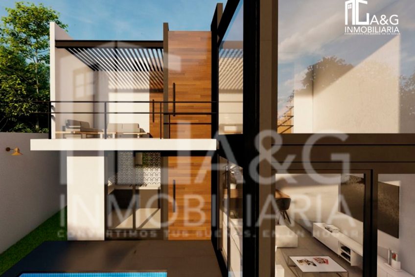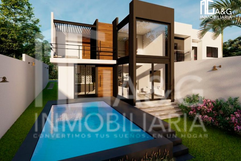 Areas Comunes : Exterior: jardín con alberca, cuarto de maquinas y estacionamiento para 2 autos.