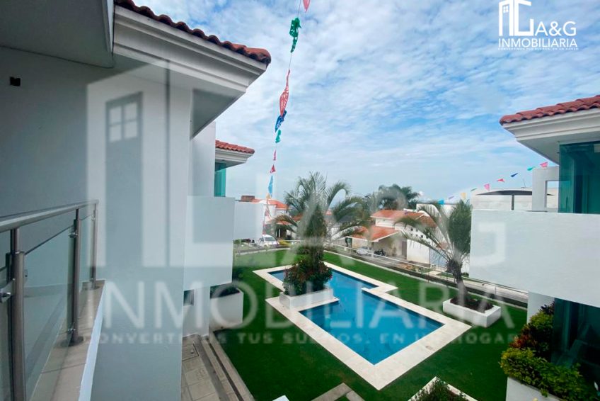 Areas Comunes : Amplio jardín, con alberca compartida, 3 recamaras todas con closet y baño completo y estacionamiento para 4 autos.