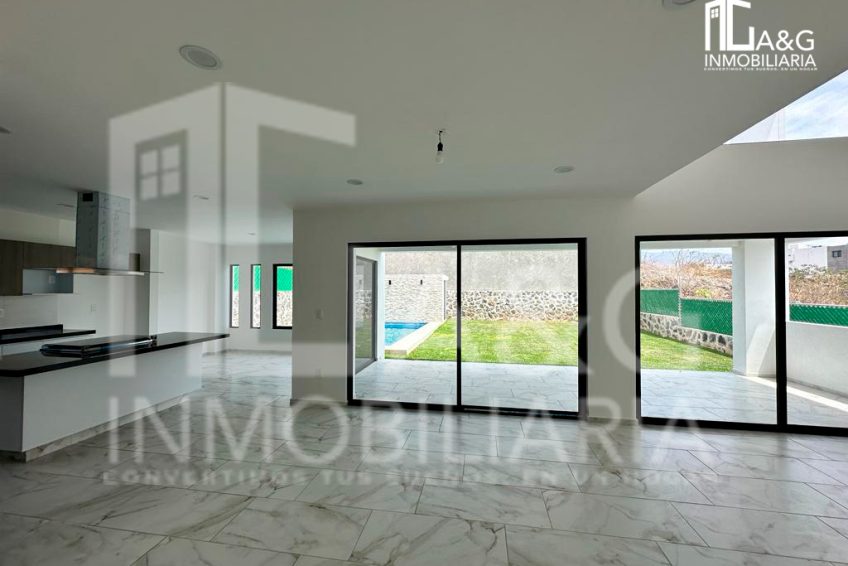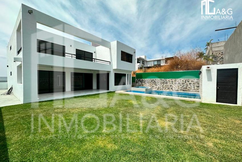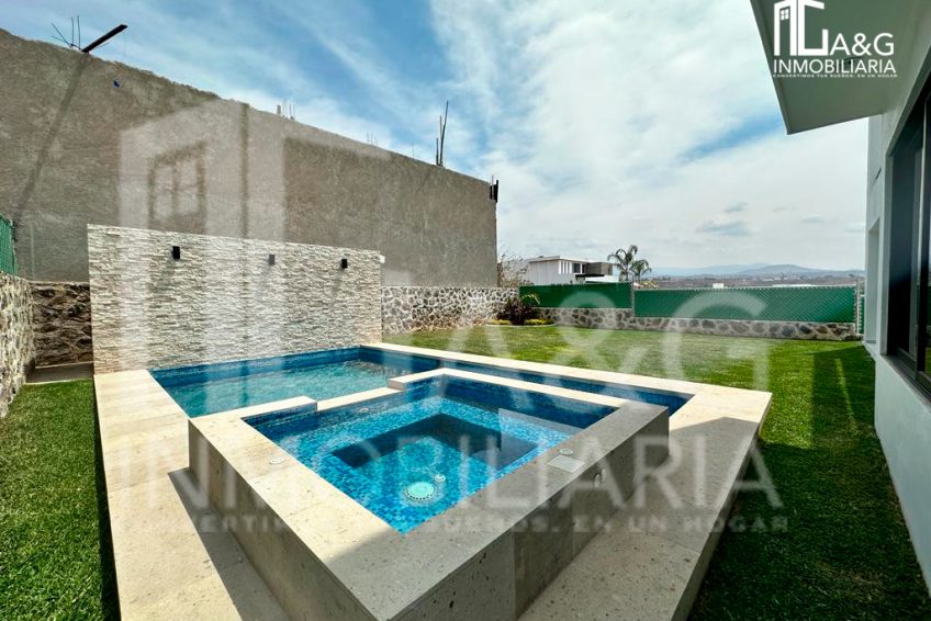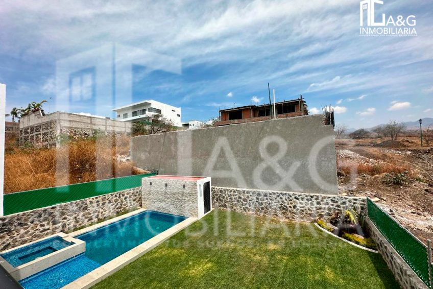 Areas Comunes : Jardín con alberca, jacuzzi y cascada y estacionamiento para dos autos. Esta propiedad está ubicada en una de las mejores zonas del Fraccionamiento Lomas de Cocoyoc.