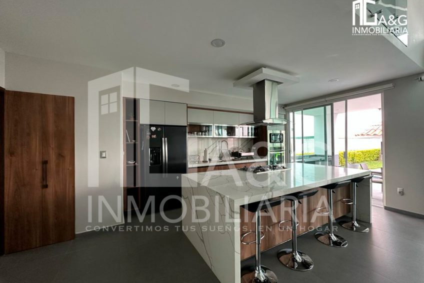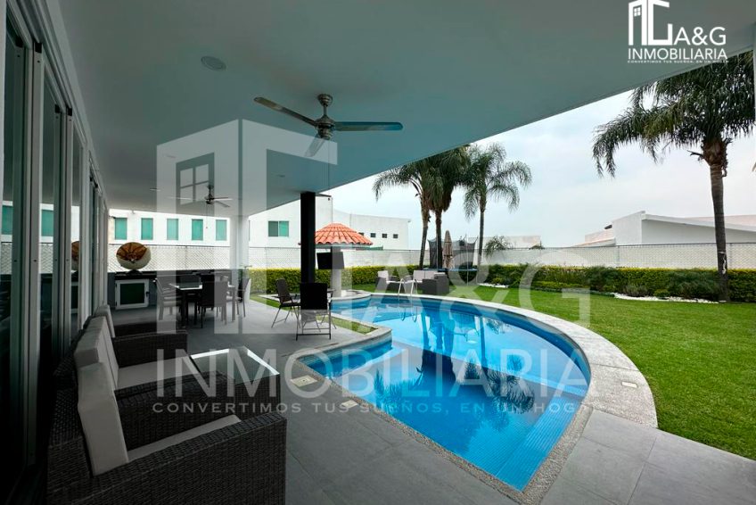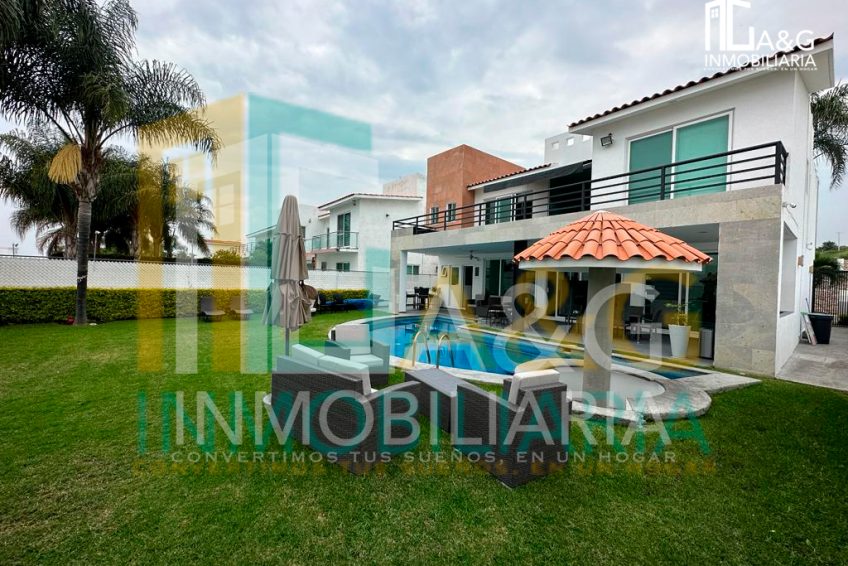 Descripción : Residencia estilo Moderno ubicada en una de las mejores zonas del Fraccionamiento Lomas de Cocoyoc. Planta Baja Sala y comedor con doble altura, Cocina equipada con refrigerador, horno y microondas, isla y cubierta con granito, Alacena Área de lavado Medio baño para visitas. Terraza con asador, Alberca con bar interior y chapoteadero, Dos baños completos exteriores Estacionamiento techado para dos autos. Planta Alta: Recámara principal con baño completo, clóset vestidor y terraza con jacuzzi. 2 recámaras con baño completo y closet.