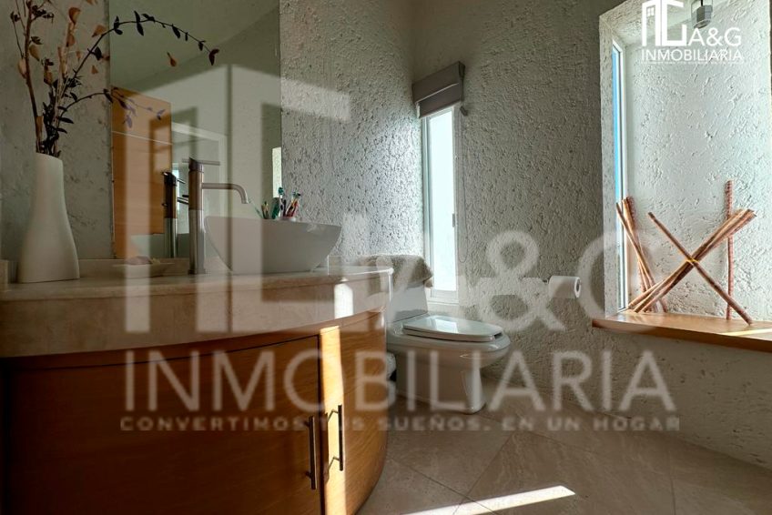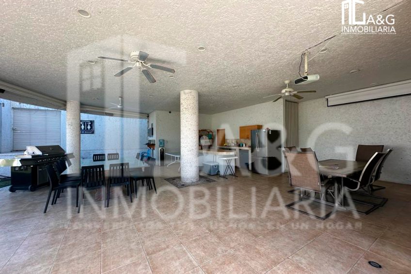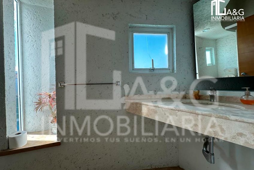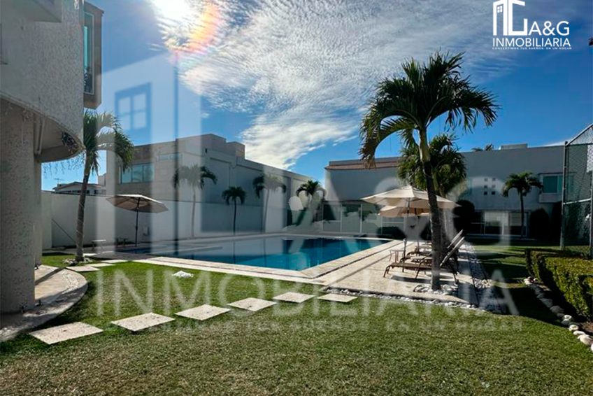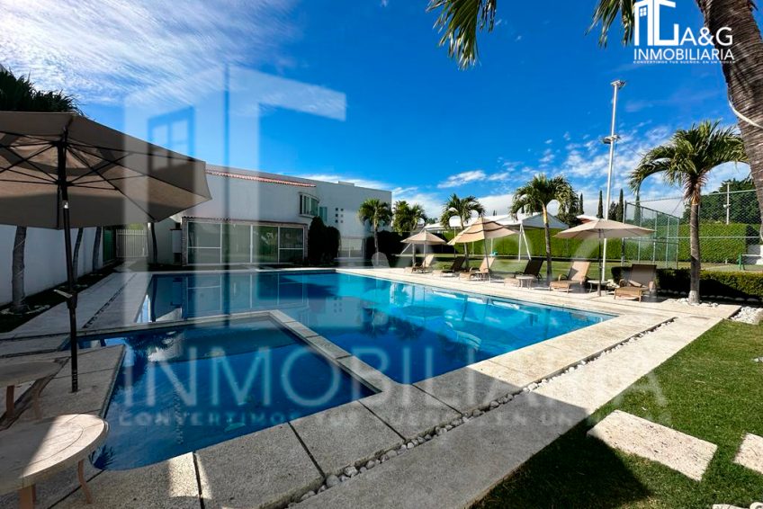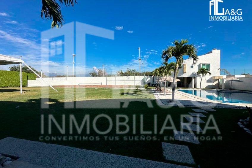 Areas Comunes : Jardín privado "muy amplio", con Alberca, asoleadero, palapa muy amplia con asador y tarja. En la parte superior de la palapa encontraras 3 recamaras con closet y baño completo, así como una linda sala. 2 baños exteriores uno para damas y otro para caballeros. cancha de tenis. Estacionamiento con capacidad para 5 autos.