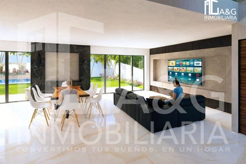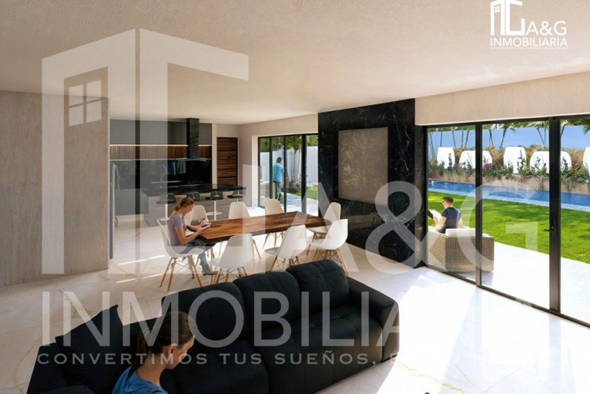 Descripción : Residencia de lujo con alberca y jardín privado. Descubre esta espectacular casa que combina diseño moderno, amplios espacios y acabados de primera calidad, ideal para disfrutar en familia o recibir invitados con todo el confort. 🌿 Planta Baja • Cocina integral con isla de cuarzo y amplia alacena • Sala y comedor con espacios con espacios amplios • Recámara de visitas con clóset y baño completo • Medio baño para visitas 🛏️ Planta Alta • Recámara principal con baño, tina, doble lavabo, vestidor y acceso a terraza • 2 recámaras secundarias, cada una con clóset y baño completo • Acogedora sala de TV