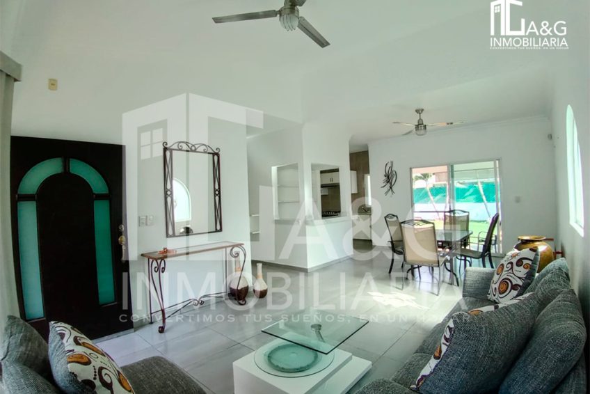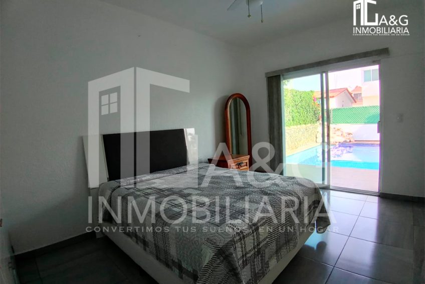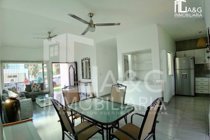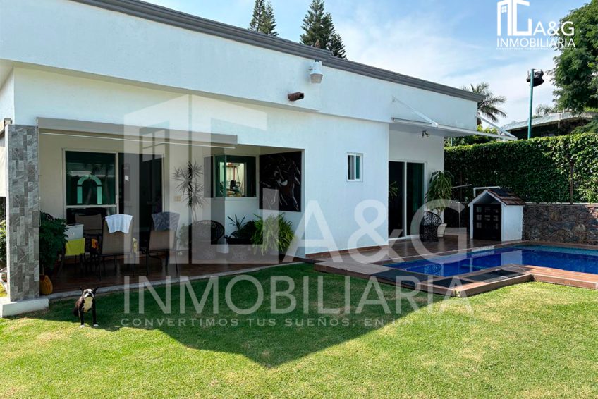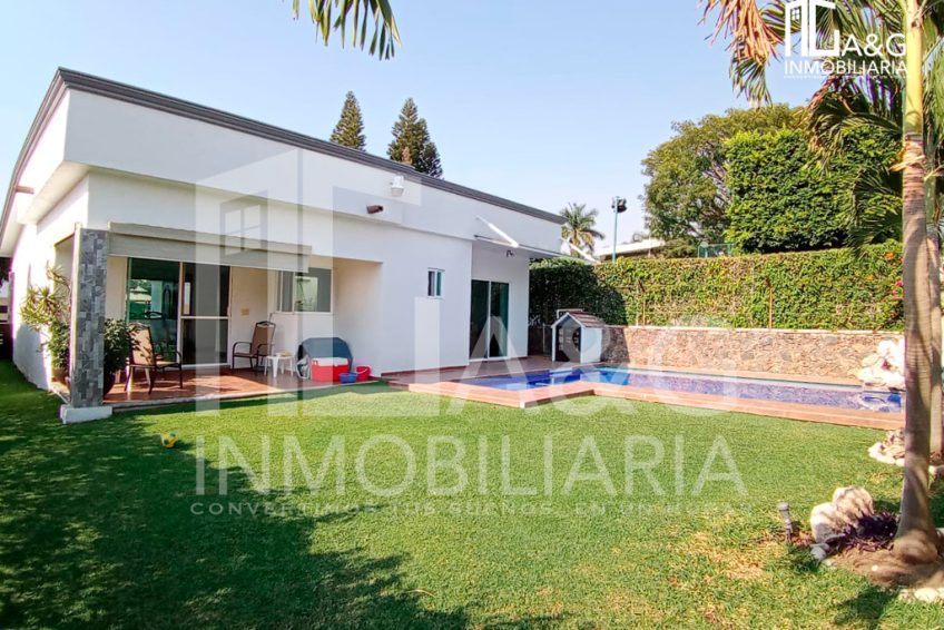 Descripción : Hermosa casa de un nivel en excelentes condiciones. Disfruta de la comodidad y funcionalidad que ofrece esta hermosa casa de una sola planta. Cuenta con amplia sala y comedor con acceso directo a la terraza, ideal para convivir con familia y amigos. La propiedad ofrece cocina integral de concepto abierto con barra desayunador, que conecta de manera práctica con el área social, además de acceso al área de lavado. Dispone de tres recámaras y dos baños completos, diseñados para brindar confort y privacidad. En el exterior encontrarás un jardín privado con alberca y terraza, perfecto para relajarte, disfrutar del clima y organizar reuniones al aire libre.